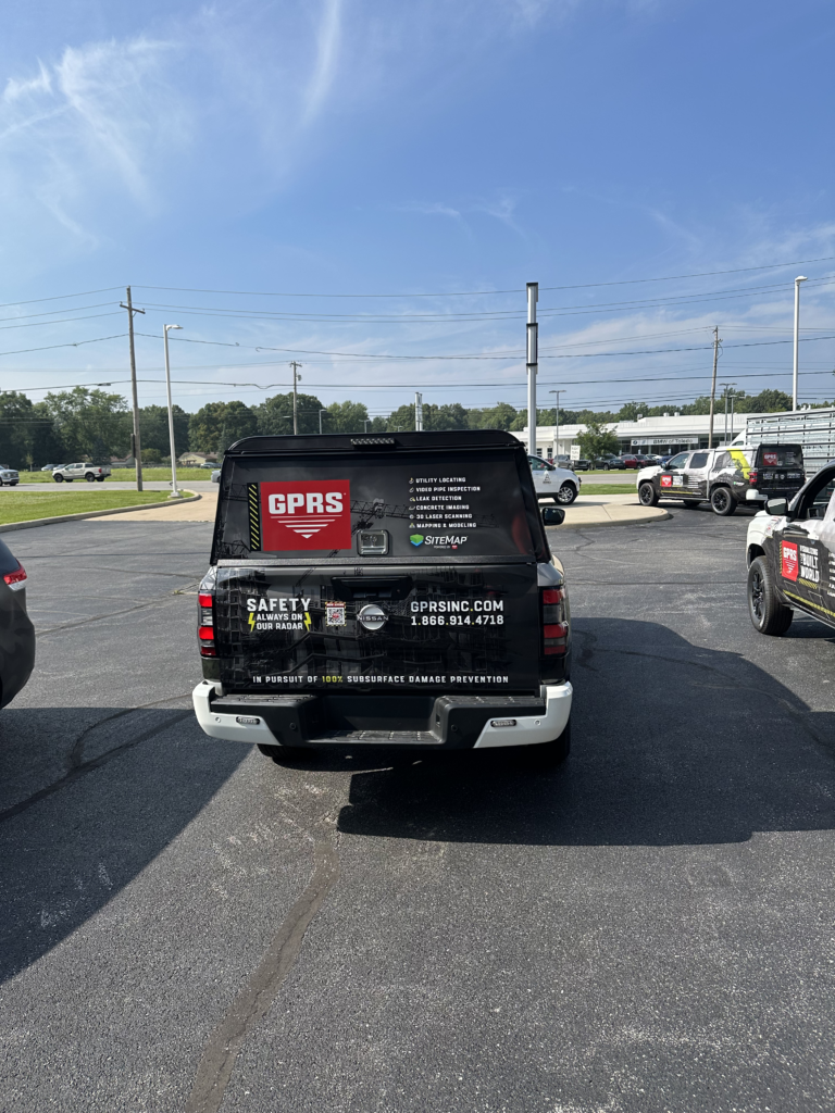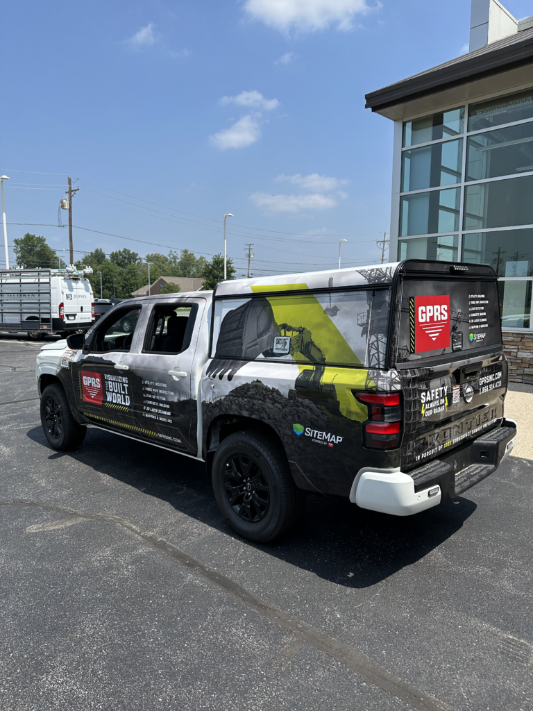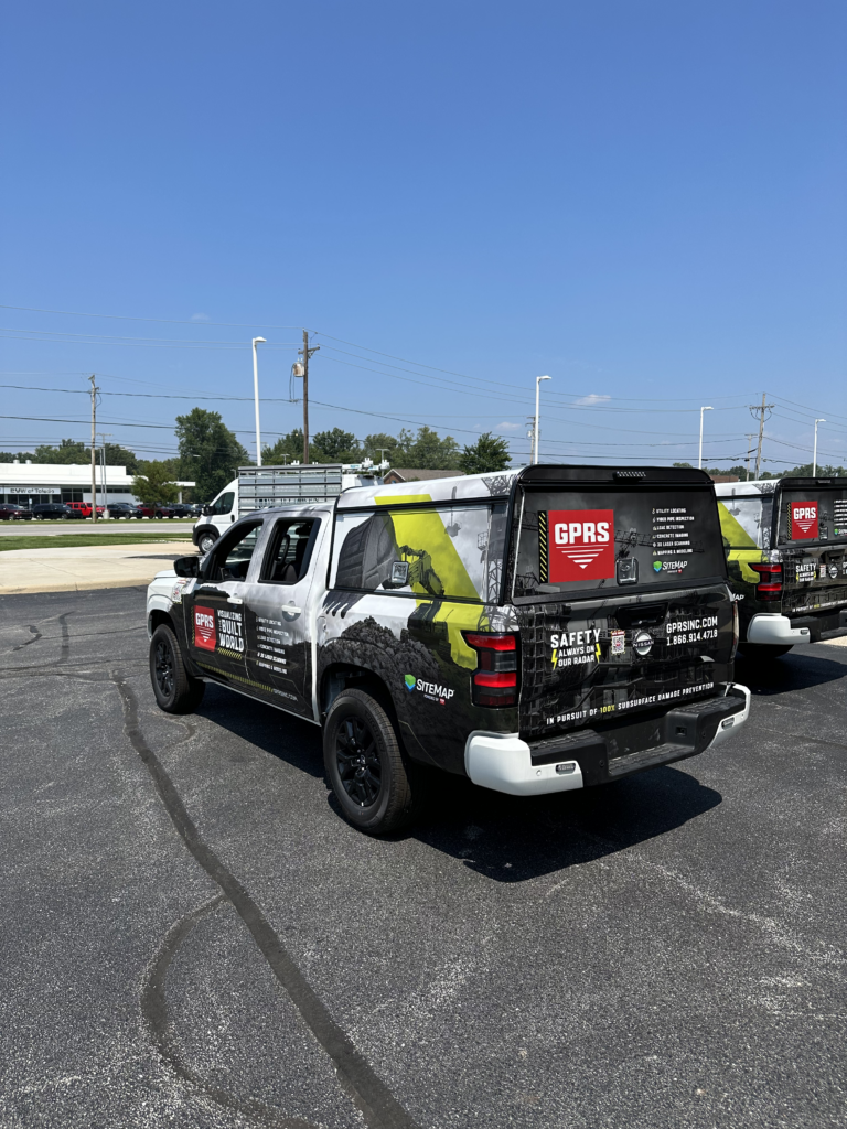 Wrapping work truck showcasing the GPRS company and more information about themselves.